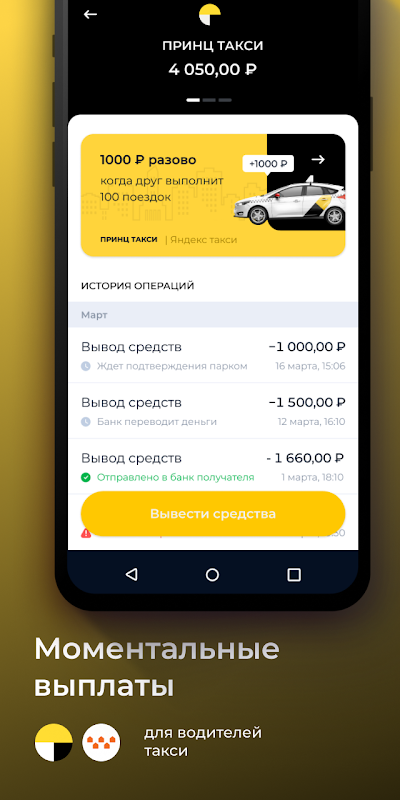 邀請一位朋友在出租車上工作,並永久獲得其收益的 2% 或 1100 盧布!