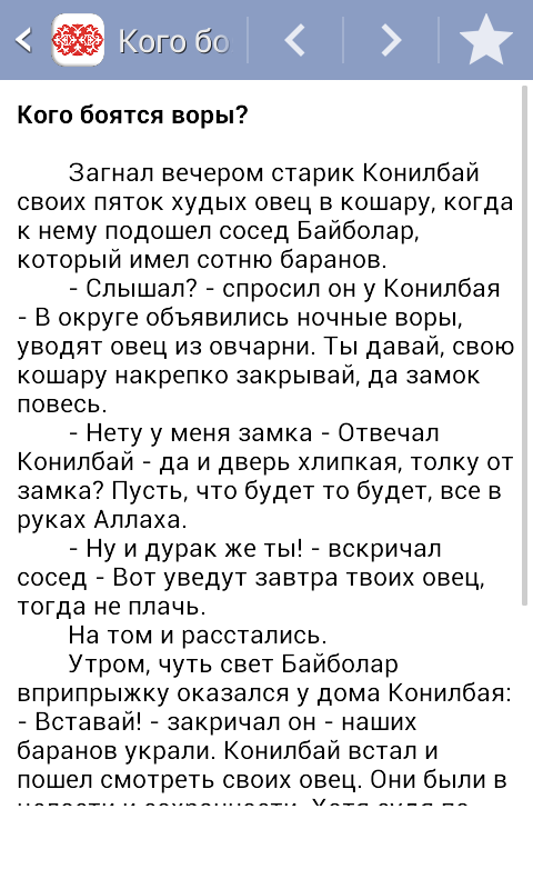 寓言 - 一個小故事承載任何教訓。箴言有用重讀 - 還記得那些開始忘記重要的事,但有時講一個比喻,這是非常有用的,而且 - 通過它更容易傳達的理念比任何爭論。哈薩克 - 一個人誰一直讚賞道。字巨人和殺死並得到羞辱振作。 “作為一個標籤上標註的字潮”哈薩克人說。
