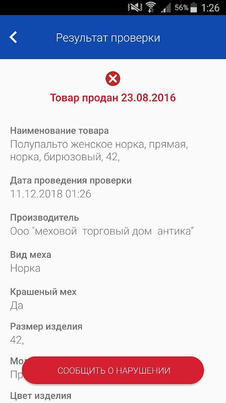 В настоящее время приложение доступно только для проверки маркировки изделий из натурального меха (в соответствии с постановлением Правительства Российской Федерации от 11.08.2016 № 787).