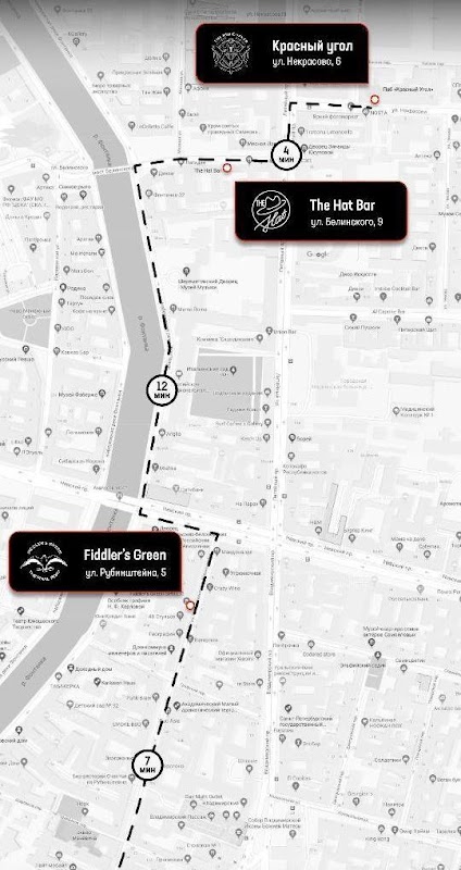 The Hat Group在聖彼得堡的四個酒吧的路線