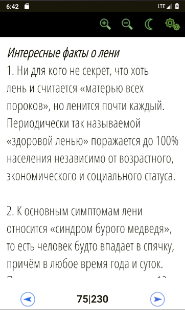 該應用程序支持“夜間閱讀”模式,該應用程序可以記住您離開每個類別的位置。因此,您以後可以從同一位置繼續閱讀。