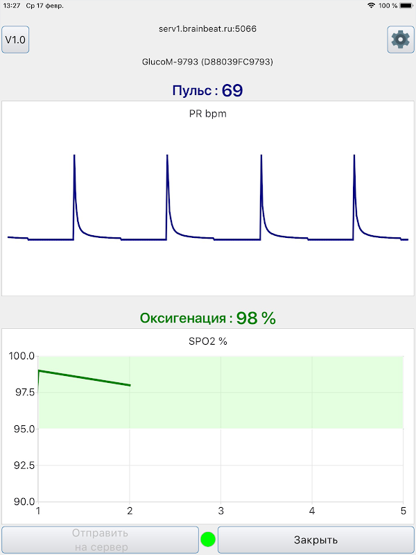 此應用程序旨在測量血液中的脈搏和血氧飽和度值。這些值已傳輸以存儲和監視到專用服務器。