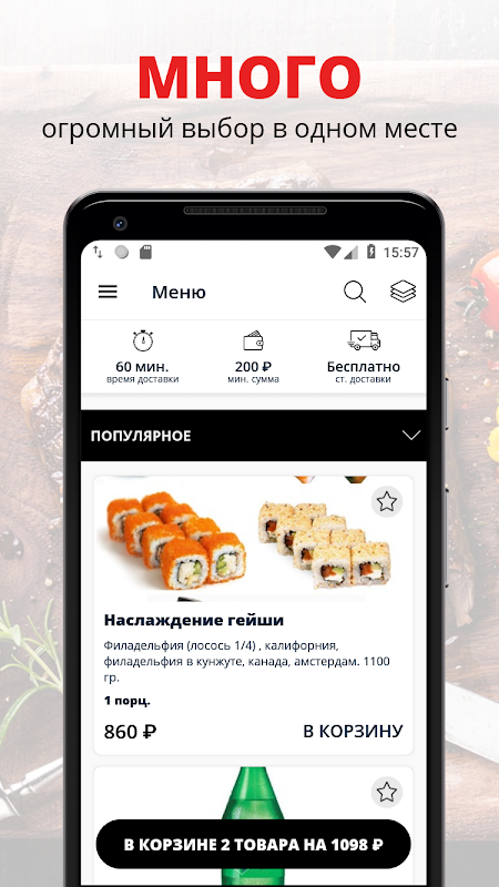 我們提供日本料理和中國菜,免費送貨,可以通過互聯網訂購,並使用銀行卡付款。