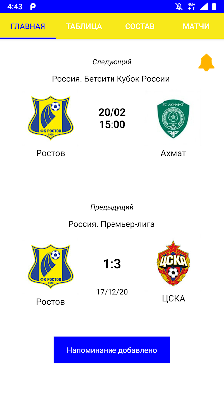 找出時間表,添加提醒,查看FC Rostov的比賽結果