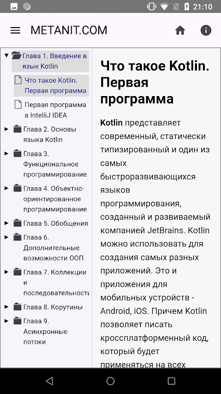 Kotlin 程式語言指南,涵蓋該語言的所有基本概念。適合初學者和已經熟悉該語言的人。可作為參考或自學指南。