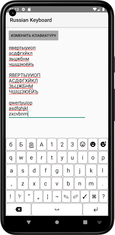 該應用程序總共包括 10 個不同的層:俄語下層、俄語上層、英語下層、英語上層、數字和 3 個常用符號、3 個表情符號。