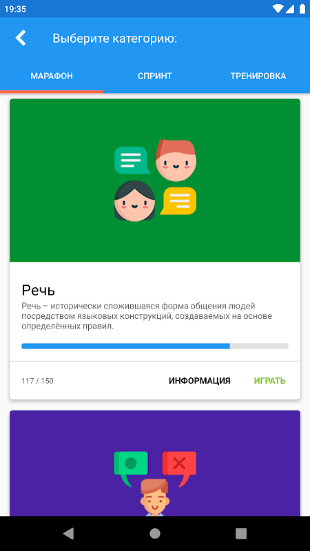 遊戲具有三種模式:街機、馬拉松和衝刺。在街機模式下,您必須完成所有級別。在馬拉松模式下,您的任務是回答該類別的所有問題。訓練:訓練沒有生命的任務。