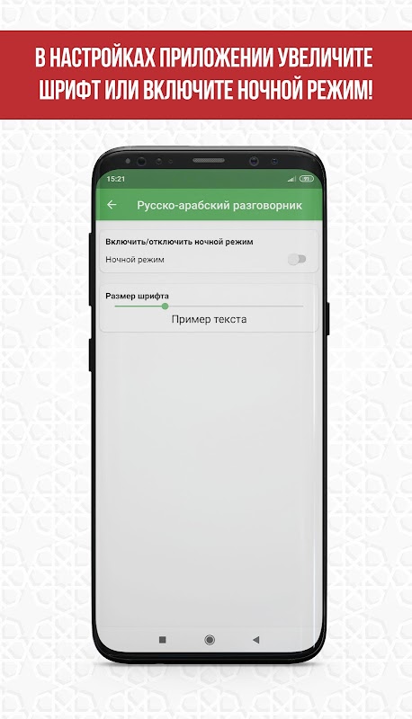 Приложение не только предоставляет доступ к большому и простому в обращении словарю, но и помогает научиться правильно читать арабский текст. В разговорнике вы сможете читать для начало из транскрипции и в дальнейшем сможете читать уже арабский текст. Именно этот подход для начало очень помогает новичкам.