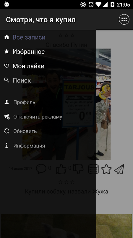 Понравившиеся записи можно комментировать и оценивать. Все понравившиеся картинки можно сохранять в галерее устройства в папке приложения. Ты можешь делиться записями с друзьями через социальные сети Facebook, Вконтакте, Одноклассники, Viber, WhatsApp а так же другие установленные на устройстве приложения. Ну и конечно, ты можешь оставлять лайки и сохранять записи в избранное.