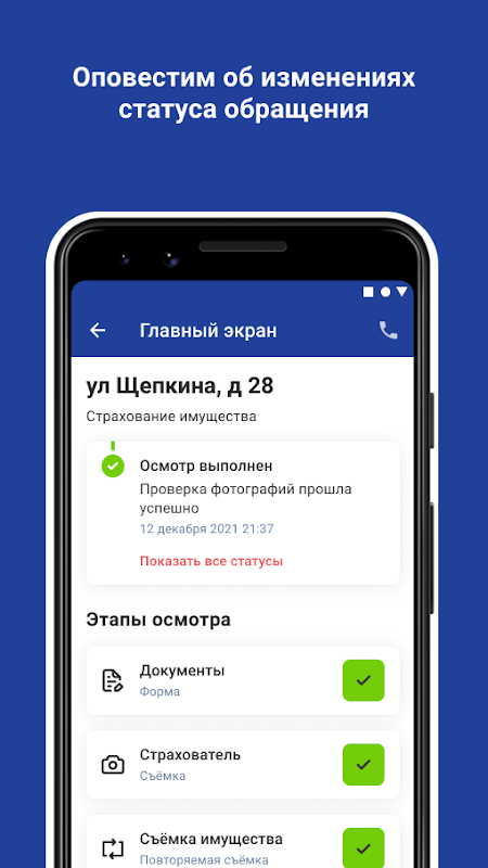 Совкомбанк Осмотр – универсальное многофункциональное приложение для выполнения осмотров по заданным сценариям. Позволяет производить осмотр с фото- и видео- фиксацией по заранее определенному алгоритму и заполнять сопроводительные формы. Схема осмотра – состав формы и набор шагов съемки – зависит от задачи, для которой используется приложение.