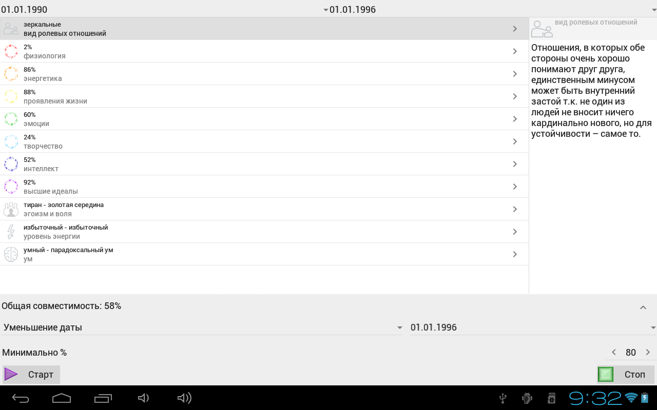 Приложение определяет совместимость людей по датам рождения: