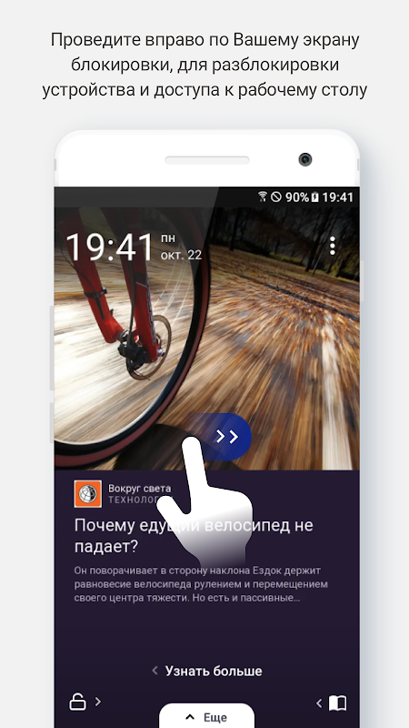 ‐ Проведите вправо по Вашему экрану блокировки, для разблокировки устройства и доступа к рабочему столу