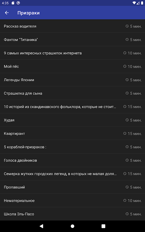 - Доступны истории на любой вкус: ужастики, истории о призраках, веселые рассказы и романтика, детективы, триллеры, приключения, фантастика, страшные переписки