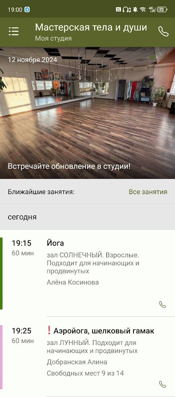 使用應用程序,您將第一時間了解工作室新聞,快速收到有關日程變更、職位空缺和特別優惠的資訊。我們會提醒您註冊課程、訂閱到期以及許多其他功能