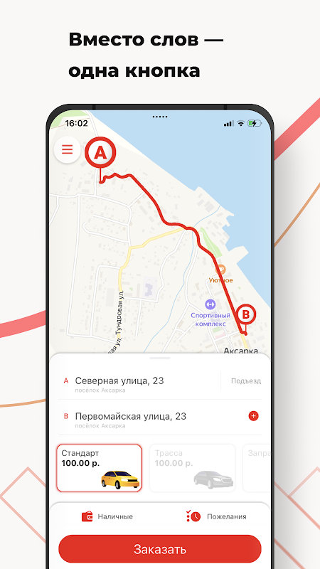 Откройте приложение, укажите адрес и закажите такси, нажав на одну кнопку.