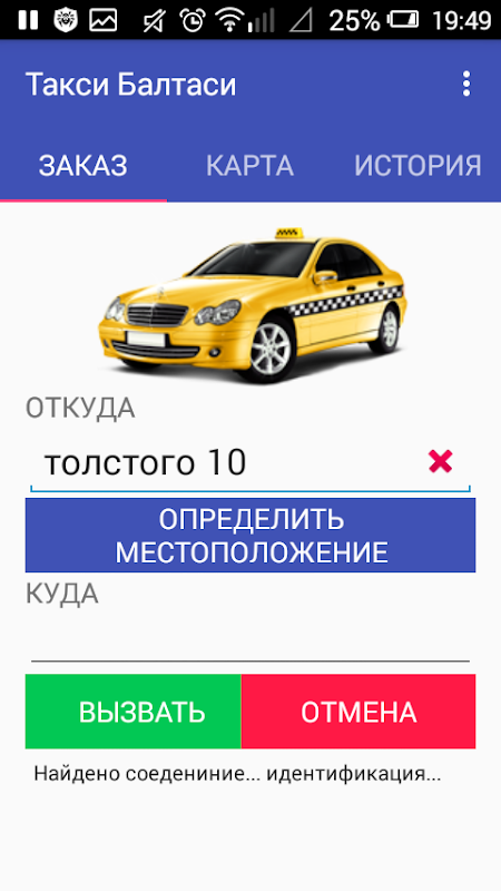 Данное приложение несет основной функционал для вызова такси и отображения состояния заказа, который клиент пожелал сделать в службе такси Балтаси и Балтасинского района р. Татарстан