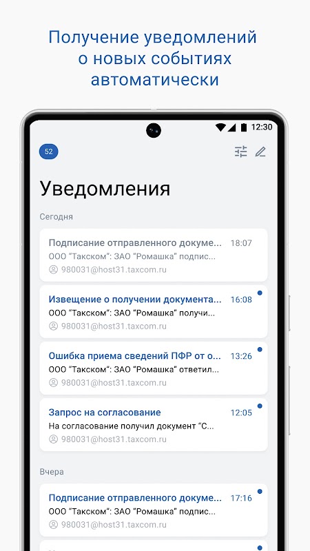 該應用程序允許您從您的智能手機主管稅務機關接收傳入的文件的通知。