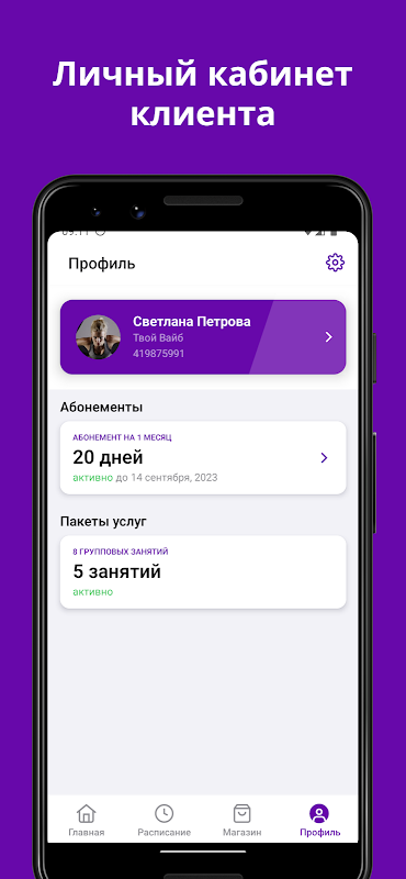 - получать напоминания о заканчивающихся абонементах 和 занятиях