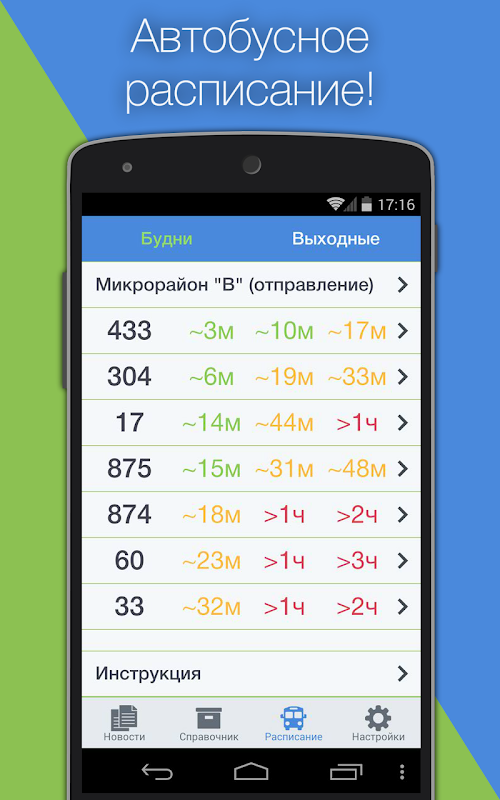 В разделе "Расписание" есть онлайн табло автобусов. Оно покажет, какие маршруты проходят через выбранную остановку, через какое время подойдут ближайшие автобусы. Здесь же есть и традиционное расписание.