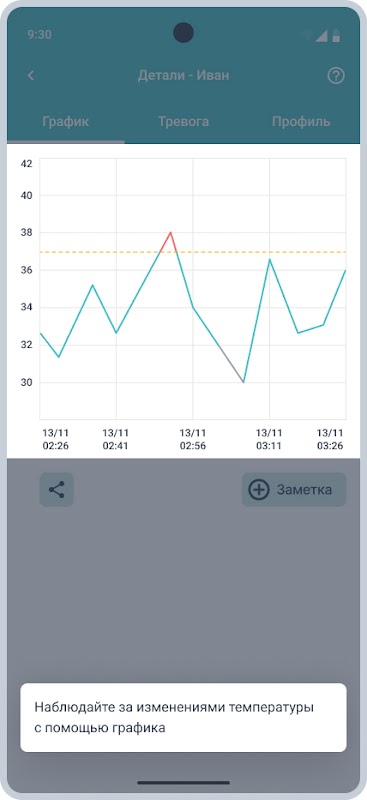 使用透過藍牙連接的 TEMPIK 體溫計,該應用程式可讓您監測孩子的體溫,並設定當體溫達到預設閾值時觸發的警報。測量到的體溫會保存在應用程式中,並以圖表形式查看。該應用程式支援同時操作多個體溫計。