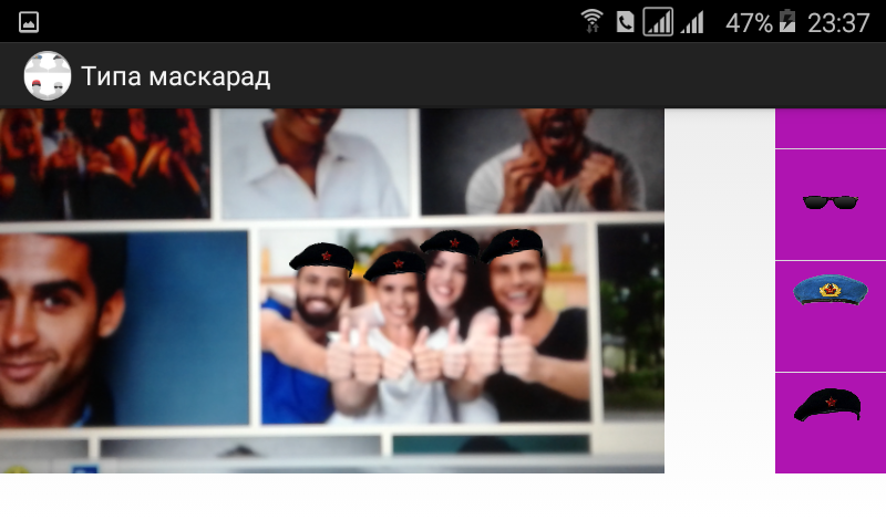 Типа маскарад - приложение нахождения лиц в реальном видеопотоке с наложением масок(береты, шапки, кепки и т.д.).