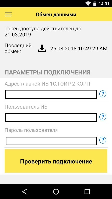 Доступ к информации в системе «1С:ТОИР 2 КОРП» дает возможность получать маршруты обходчика (наряды на регламентное мероприятие), необходимую справочную информацию и оперативно передавать документы, аудио- и видеофайлы, фото, геокоординаты, сканированные штрих-коды, NFC-метки объектов ремонта, созданные на мобильном устройстве, в базу «1С:ТОИР 2 КОРП».