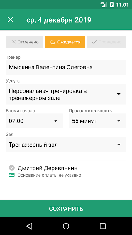 健身俱樂部教練使用軟件1C的應用程序:健身俱樂部。