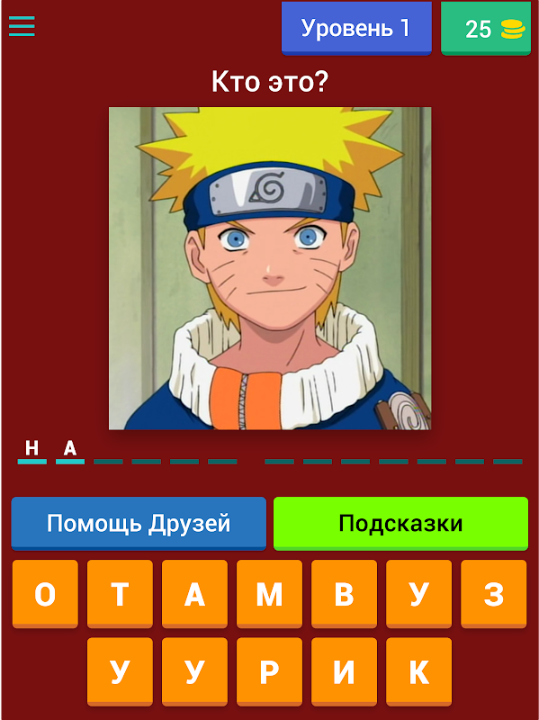 Новая развлекательная игра посвященная персонажам из аниме. Здесь вам предстоит угадывать персонажей из популярных аниме-сериалов такие как: Наруто и многих других! В игре большое количество уровней, поэтому вам будет весело проводить время!