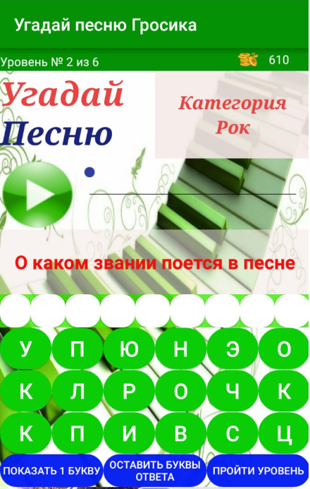Угадай песню Гросика - это музыкальная викторина, в которой перед вам предстоит отвечать на музыкальные вопросы по мелодии.