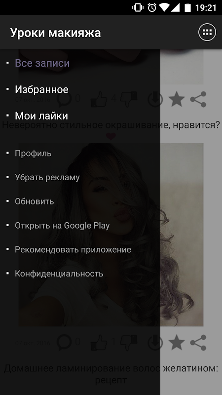 В приложении вы найдете советы по уходу за кожей лица, мода и стиль одежды для женщин, как правильно наносить макияж, всё о красивых волосах, как увеличить губы визуально, женская красота и макияж советы, мастер классы, самые полезные советы о том, как стать красивой, удаление морщин, повседневный макияж и как сделать макияж на вечер, как ухаживать за собой, женские хитрости, модные образы, макияж пошагово, как избавиться от прыщей, ароматерапия, makeup photo, макияж для карих глаз, советы красоты и здоровья для девушек, женская мода, женские секреты красоты, макияж для голубых глаз, как понравится парню, подробное описание макияжей для зеленых глаз, модные прически на праздник, прически на каждый день, макияж в стиле популярных звезд и многое другое.
