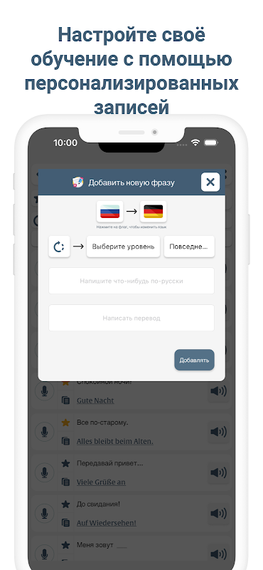 我們的應用程式旨在讓俄語人士輕鬆有效地學習德語,無論您是德語初學者還是正在提陞技能。透過根據您的程度調整的互動式人工智慧課程,您將快速自信地掌握德語。