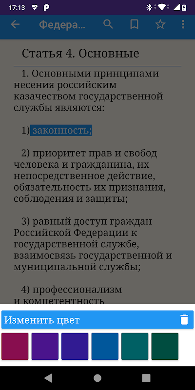 - Добавляйте нужные статьи в список избранное, для быстрого доступа к ним из меню;