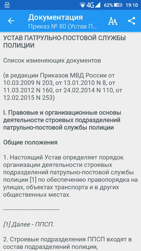 Приложение представляет собой удобный справочник по Федеральному закону «О полиции». Приложение содержит полный текст закона, актуальный на данный момент времени. Включен Устав ППСП (Приказ № 80)
