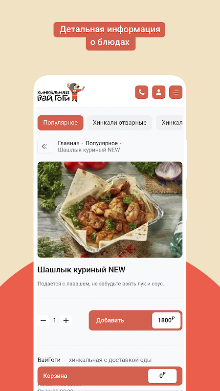 菜單包括各種多汁的 khinkali、肉類菜餚、khachapuri 以及各種沙拉和甜點,可滿足各種口味。為了傳達各種菜餚的意境和真實味道,我們收集了 Imereti、Megrelian、Kakhetian、Svan 和 Adjarian 烹飪傳統的食譜。一個寬敞舒適的夏日陽台,以美妙的色彩打造,適合浪漫的會議、輕鬆的假期和無憂無慮的夜晚,一定會讓每個人都滿意!在這個城市的任何地方,真正的 khinkali 和 khachapuri 都沒有這樣的價格。每個週末都有 khinkal 現場演唱和最深情的熱門歌曲!對於生日,您將享受 10% 的折扣。所有這些都是為了讓您想要一次又一次地回到我們身邊!