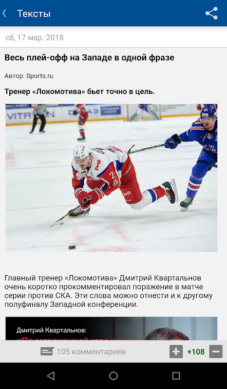 Sports.ru 的 HC SKA 版是聖彼得堡球隊球迷的最佳應用程序。比賽結果和日曆、在線文本廣播、新聞和視頻 - 關於您的團隊的一切,及時而詳細。您將始終了解您最喜歡的球隊和洲際曲棍球聯盟正在發生的事情。跟踪 HC SKA 從未如此方便。