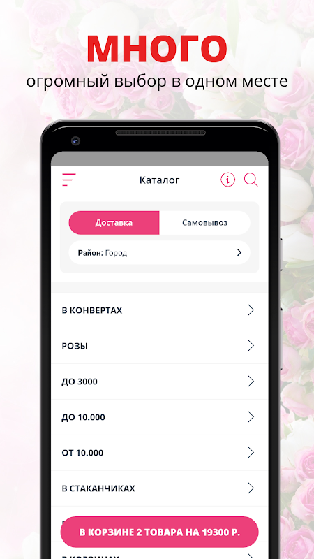 在我們的移動應用程序中,您可以選擇您喜歡的花束並進行預訂,以及在符拉迪沃斯托克送花。我們的快遞員會在準確的時間遞送花束(符拉迪沃斯托克境內的遞送費用為 300 盧布)。如果您願意,您可以隨時在花束上附上一張便條或一張可愛的作者的明信片。並添加氣球。