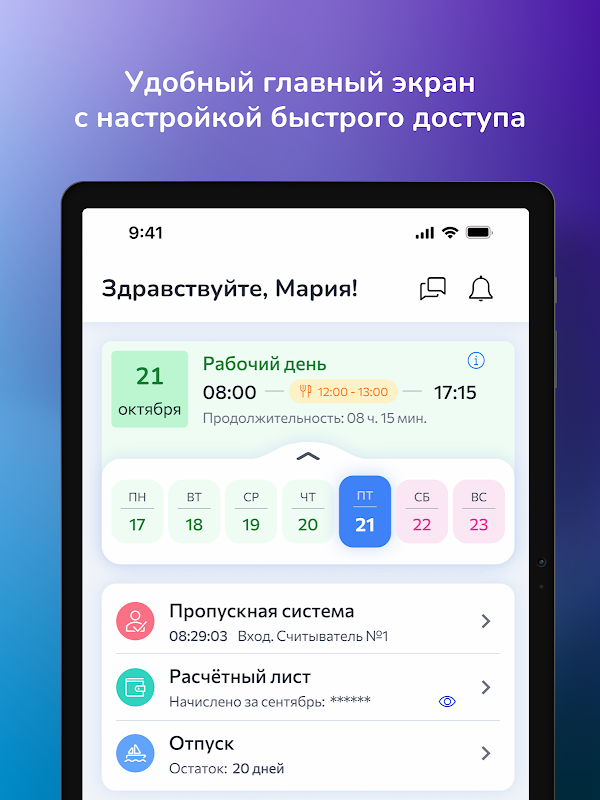 該應用程式允許索利戈爾斯克最大企業的員工熟悉工作表、工資單、教育數據、激勵措施、獲取有關材料和設備的個人卡的資訊以及有關工作服清單的資訊。