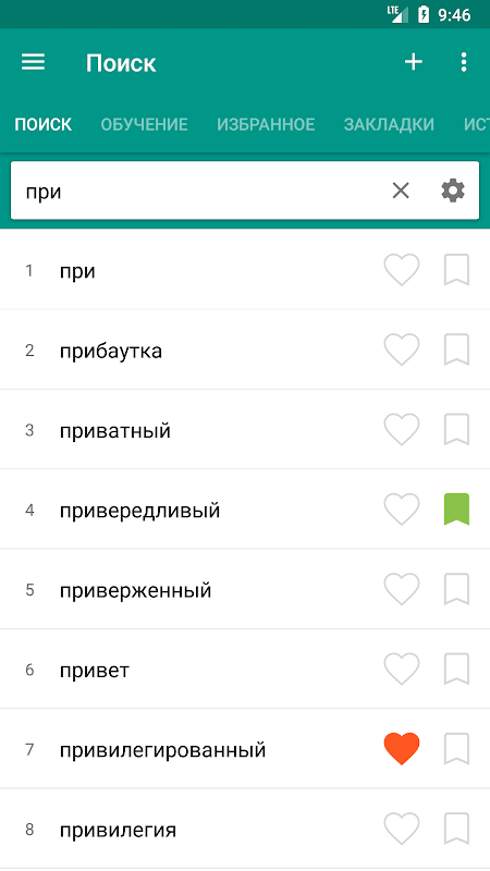 5. Izbrannoe-將單詞添加至收藏夾列表。