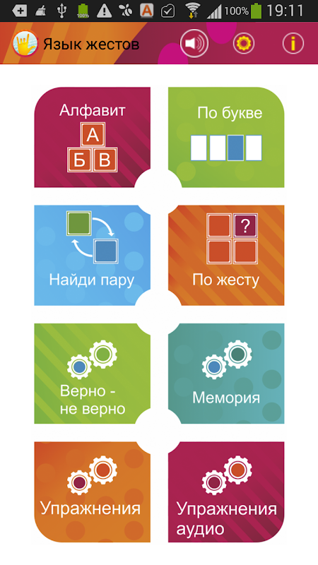 在遊戲中你可以選擇學習的整個字母,或手勢的特定群體。在此方案的基礎上會選擇練習你學習和記憶的特定手勢。
