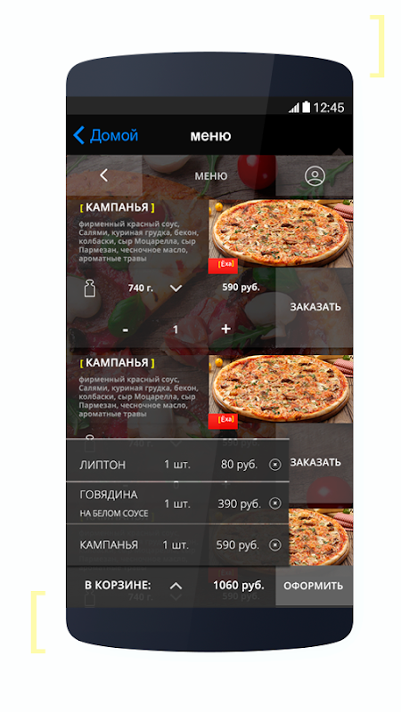 Заказывать пиццу, горячее, салаты, пасты, напитки и многое другое прямо со своего мобильного телефона.