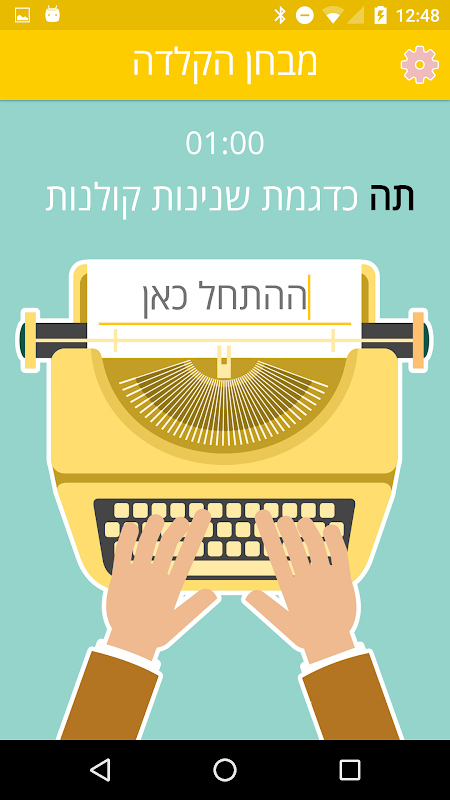 打字速度測試。檢查你的手機在希伯來語和英語的快速打字。
