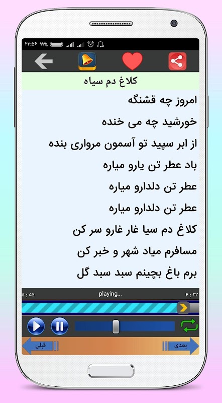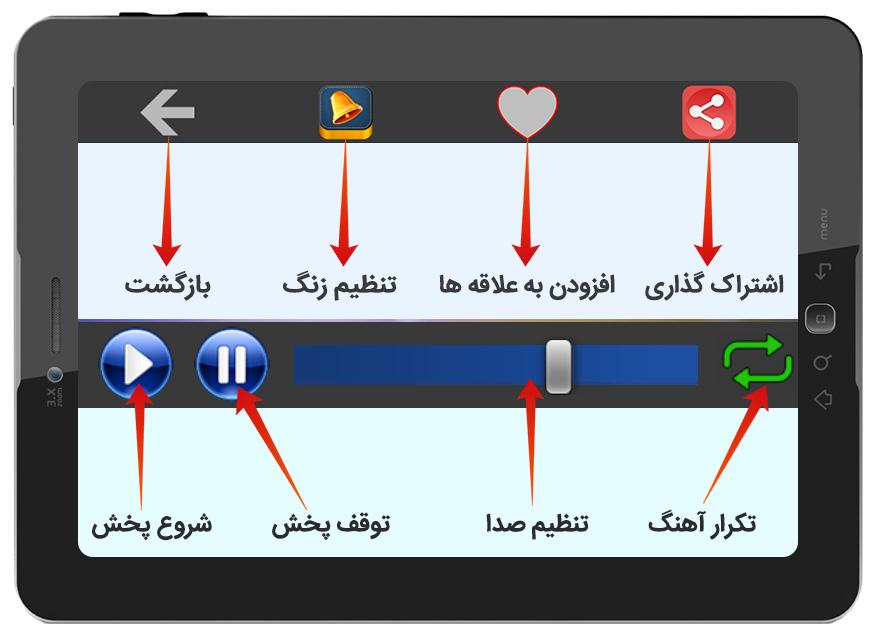 ✔امکان پخش،تکرار و توقف آهنگ ها