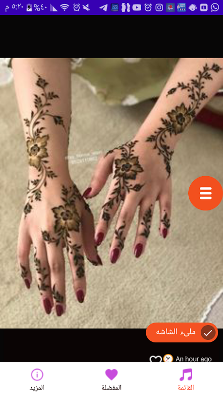 該應用程序包含有圖片題詞,特別是如果您是指甲花繪圖的愛好者並且正在尋找今年要使用的新的和現代的設計。這裡有來自摩洛哥,突尼斯和阿爾及利亞的各種指甲花題詞。我們也直接去了其他亞洲國家,例如印度,而不必忘記提及一些充滿女性味的歐洲國家,您可以該應用程序具有其獨特的功能以及簡單易用的工具,通過這些應用程序,您可以在社交網站和應用程序上的所有朋友之間共享消息。