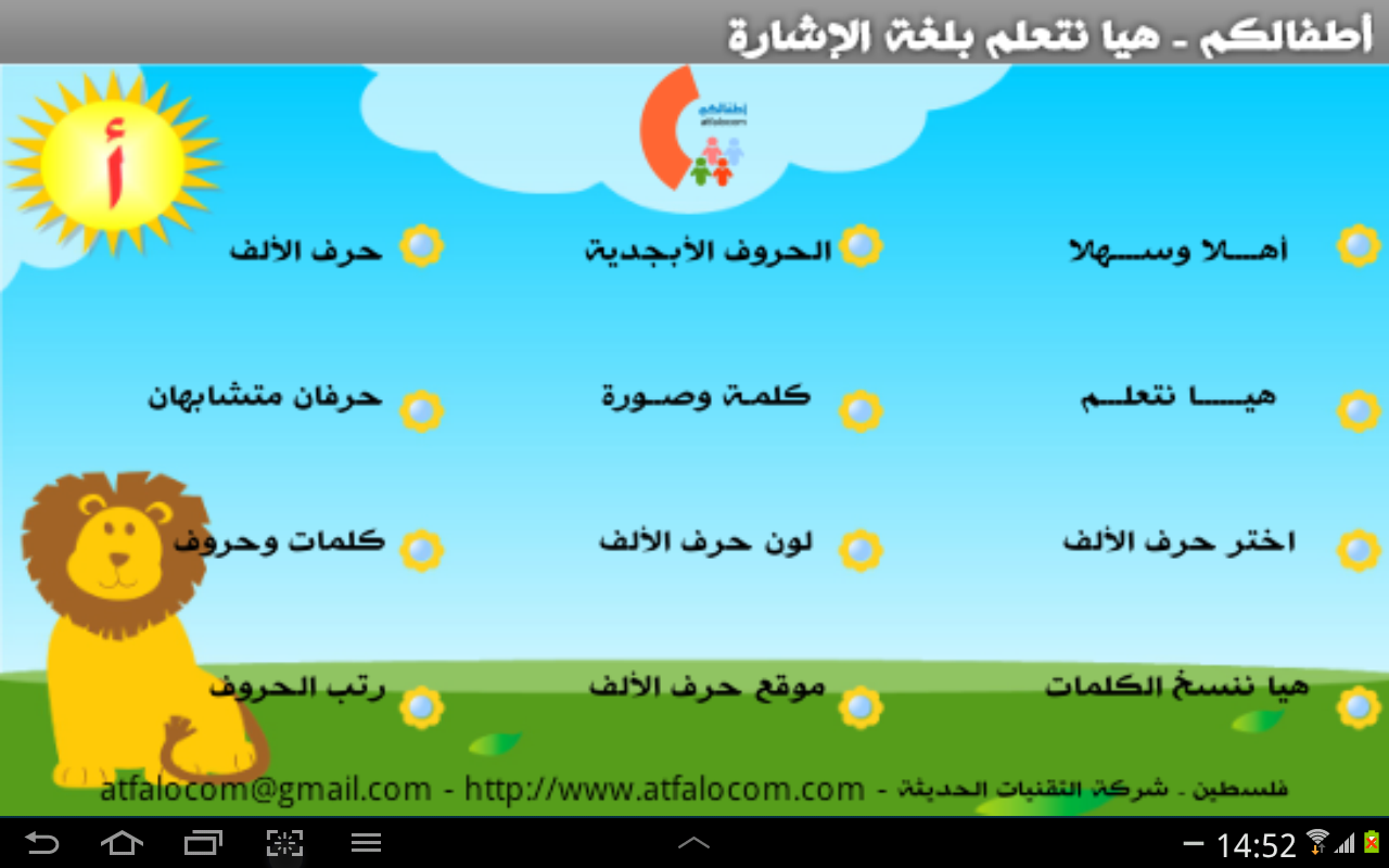 تم إنشاء تطبيق "أطفالكم حرف الألف" ليتمكن الطفل من تعلم الحروف العربية الأبجدية بطريقة سلسة .. علماً بأن هذا التطبيق مترجم إلى لغة الإشارة الموحدة في الوطن العربي.