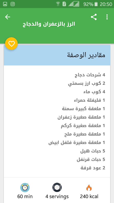 - إذا أعجبتك وصفة يمكنك إضافتها إلى قائمة الوصفات المفضلة