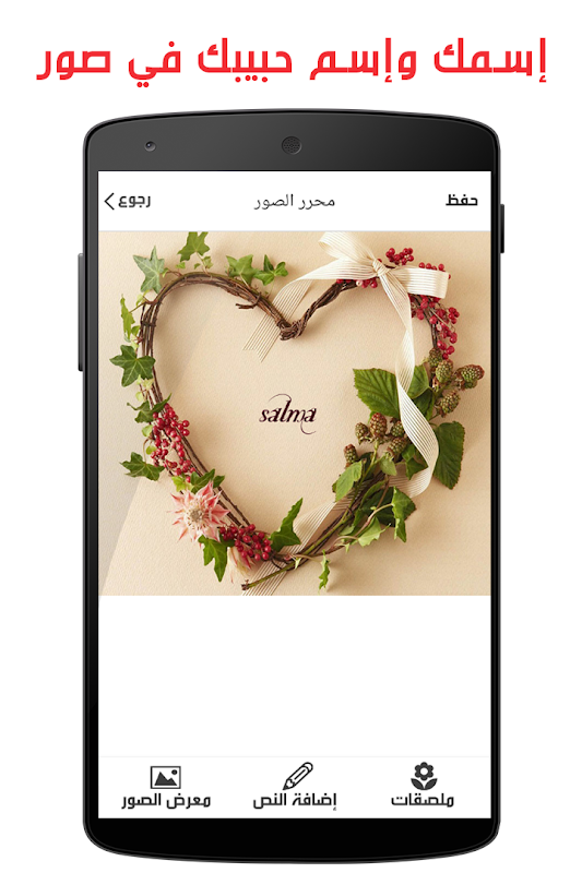 هل تبحث عن صور رومانسية تكتب عليها إسمك واسم حبيبك ؟ هل تبحثين عن برنامج كتابة اسمك واسم رفيقتك في الصورة ؟ الآن قد وجدتي التطبيق الذي سوف سيساعدك في كتابة الأسماء على الصور و أيضا كتابة إسمك على قلب وفي أماكن رائعة .. والمزيد من الخصائص الرائعة والمدهشة تجدها في تطبيقنا ...