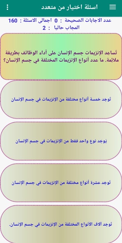 該應用程式適用於三年級中學生,涉及科學科目、智力問題和取決於學生理解的問題,並立即顯示結果。