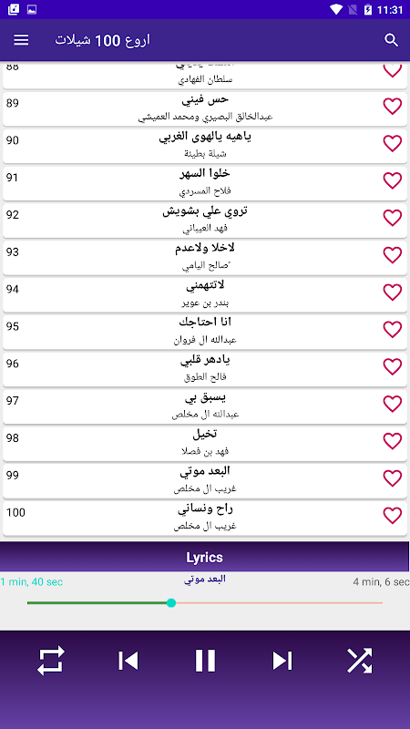 ✅ يحتوي على كلمات كل اغنية مع اسم الفنان الخاص بالشيلة