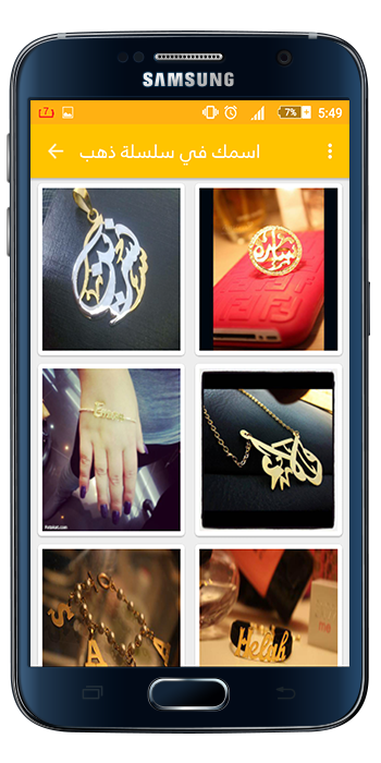يمكنك أيضا كتابة الاسماء على الصور و التحميل على هاتفك كما يمكنك تكبير الصورة ووضعها كخلفية في جهازك اندرويد. اسمك مكتوب على سلسلة من ذهب