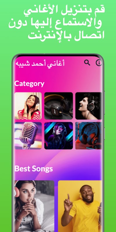 如果您喜歡聽悲傷的歌曲、浪漫的阿拉伯歌曲、各種阿拉伯歌曲或來自某個國家的歌曲,例如伊拉克阿拉伯歌曲,或海灣地區的各種歌曲,例如沒有互聯網的阿拉伯歌曲、悲傷的歌曲和阿拉伯語 Dabke 歌曲,然後是沒有網絡的舊 Ahmed Shaybah 應用程序